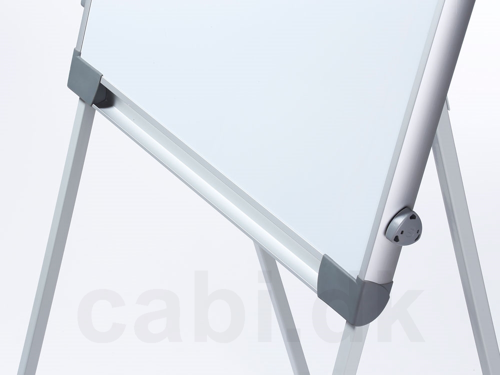 Meget flot og stabil flip-over tavle med 2 stk billedophæng og på stativ, som nemt klappes sammen. Kraftig konstruktion med magnetisk whiteboard overflade. Tavlen kan anvendes med flip-over blokke eller som whiteboard tavle.
