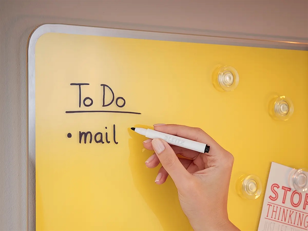 Leitz Cosy magnetiske glastavler er et værktøj til notestagning, der kan bruges igen og igen, bare skriv med den medfølgende marker, tør rent og start på ny.