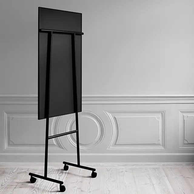 Med Lintex ONE Mobil whiteboardtavle får du en klassisk vendbar dobbeltsidet whiteboardtavle på hjul. Med skriveflade af keramisk emalje på begge sider af tavlen og med hvid ramme og hvidt stativ. Totalhøjde inklusiv stativ 1960 mm.