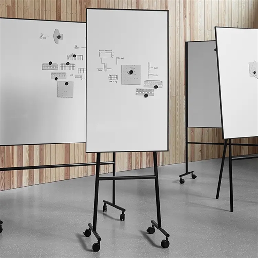 Med Lintex ONE Mobil flipovertavle får du en klassisk mobil flipovertavle på hjul. Med stålkeramisk skriveflade og sort ramme og sort stativ. Bagsiden af tavlen er lakeret i samme farve som ramme og stativ. Totalhøjde inklusiv stativ 1960 mm